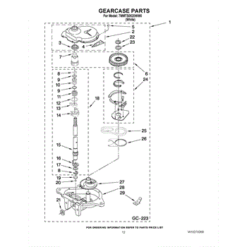 • Replacement requires accessing the agitator/gearcase per the OEM service manual and may involve transmission/gearcase disassembly.