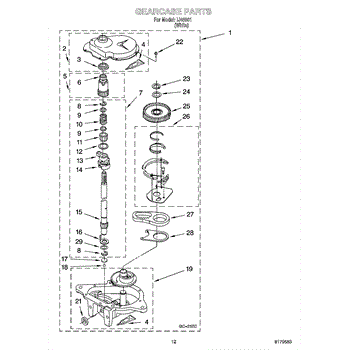 • Replacement requires accessing the agitator/gearcase per the OEM service manual and may involve transmission/gearcase disassembly.