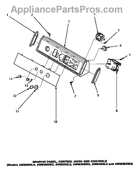 Parts for Amana AWM290W2: 08 - Graphic Panel, Control Hood & Controls Parts