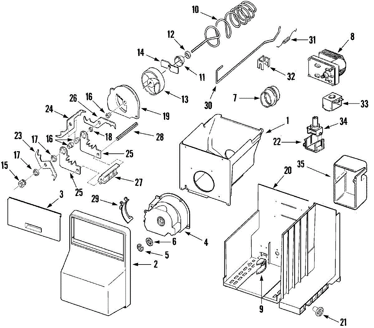 Fixes ice dispenser not dispensing or auger not turning. This motor assembly drives the auger shaft that moves ice from bin to chute. Moderate difficulty.