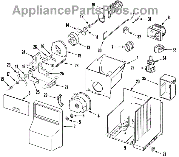Fixes ice dispenser not dispensing or auger not turning. This motor assembly drives the auger shaft that moves ice from bin to chute. Moderate difficulty.