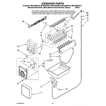 The Ice Maker Wiring Harness is an OEM part for Whirlpool refrigerators. This part ensures electrical connectivity between the ice maker and the refrigerator's power supply, facilitating the various functions required for ice production. The wiring harness is key to the ice maker's operation, transmitting power and sensor signals that govern the ice-making cycle, including water filling, freezing, and ejecting ice into the bin.