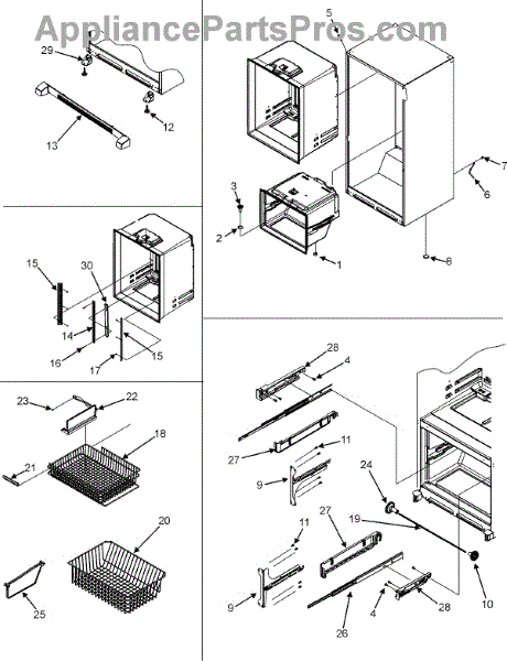 • Replaces cracked, broken, or missing bracketry that can cause rattling or uneven basket movement