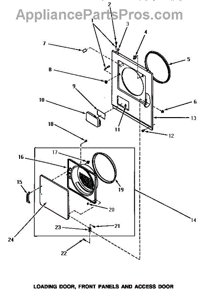 The Door Catch Kit is an OEM part for Whirlpool dryers. It includes the door catch and the necessary mounting hardware to secure it in place. This kit ensures the dryer door remains securely closed during operation, preventing heat loss and ensuring the appliance functions efficiently.
