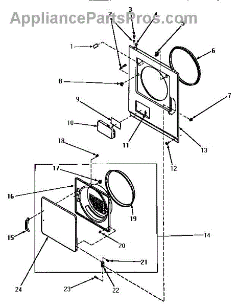 The Door Catch Kit is an OEM part for Whirlpool dryers. It includes the door catch and the necessary mounting hardware to secure it in place. This kit ensures the dryer door remains securely closed during operation, preventing heat loss and ensuring the appliance functions efficiently.