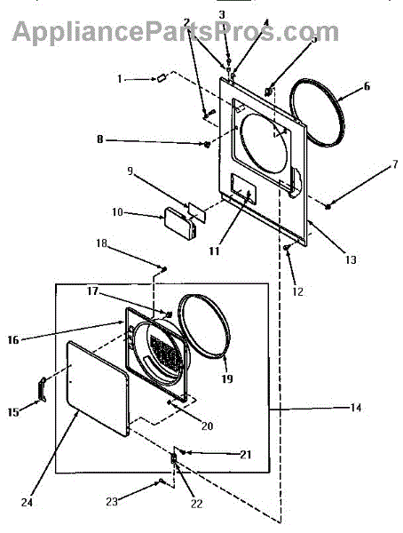 The Door Catch Kit is an OEM part for Whirlpool dryers. It includes the door catch and the necessary mounting hardware to secure it in place. This kit ensures the dryer door remains securely closed during operation, preventing heat loss and ensuring the appliance functions efficiently.