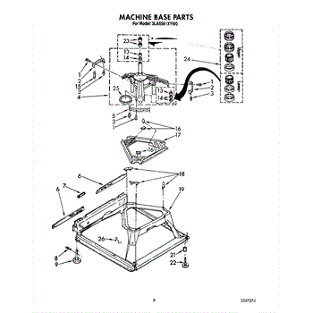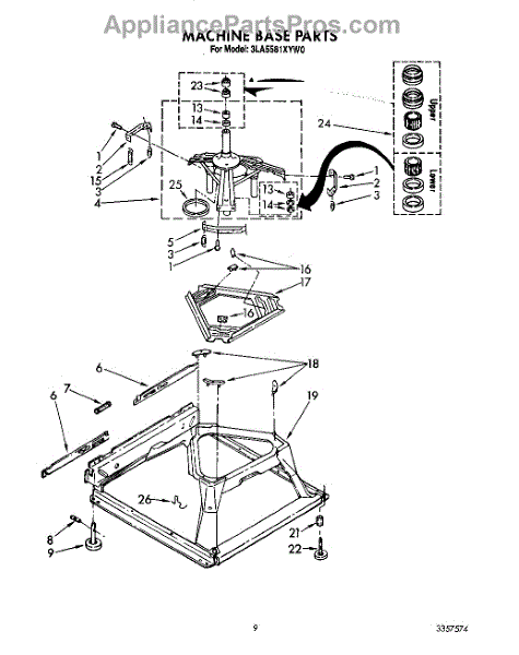 Used for direct drive washing machines. Complete assembly includes 2 level mechanism links, 1 level mechanism spring, 1 knurled pin, 2 rear feet, 1 pad plate, 1 suspension plate, 1 base pad, and 1 suspension spring retainer.
