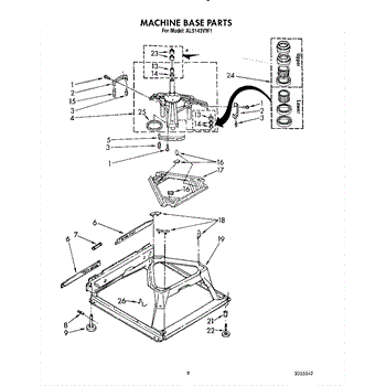 Used for direct drive washing machines. Complete assembly includes 2 level mechanism links, 1 level mechanism spring, 1 knurled pin, 2 rear feet, 1 pad plate, 1 suspension plate, 1 base pad, and 1 suspension spring retainer.