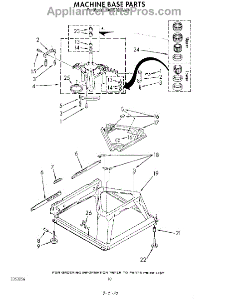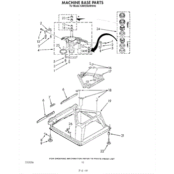 Used for direct drive washing machines. Complete assembly includes 2 level mechanism links, 1 level mechanism spring, 1 knurled pin, 2 rear feet, 1 pad plate, 1 suspension plate, 1 base pad, and 1 suspension spring retainer.