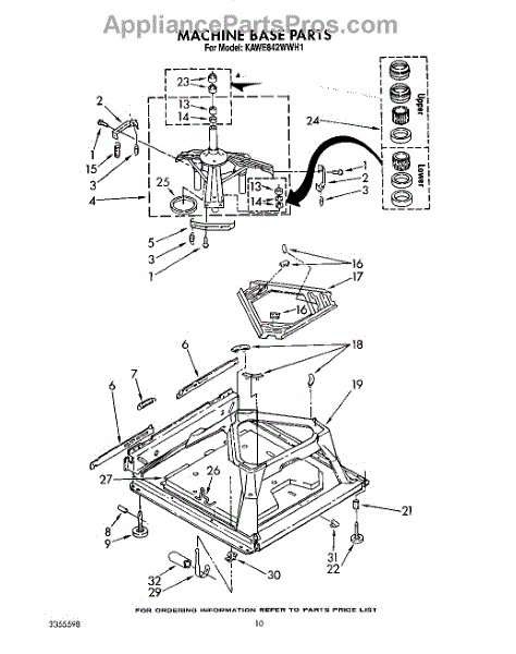 Used for direct drive washing machines. Complete assembly includes 2 level mechanism links, 1 level mechanism spring, 1 knurled pin, 2 rear feet, 1 pad plate, 1 suspension plate, 1 base pad, and 1 suspension spring retainer.