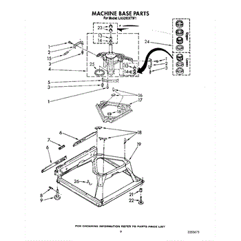 Used for direct drive washing machines. Complete assembly includes 2 level mechanism links, 1 level mechanism spring, 1 knurled pin, 2 rear feet, 1 pad plate, 1 suspension plate, 1 base pad, and 1 suspension spring retainer.