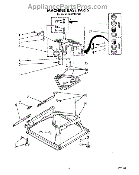 Parts for Whirlpool LA5550XPW8: 08 - Machine Base Parts