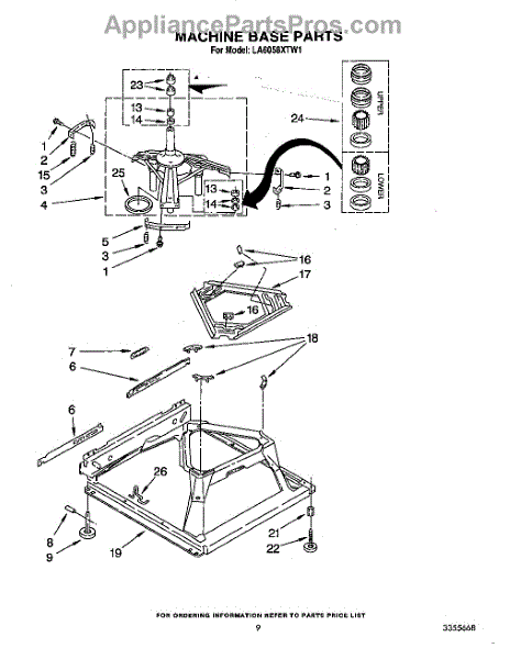Parts for Whirlpool LA6058XTW1: 08 - Machine Base Parts