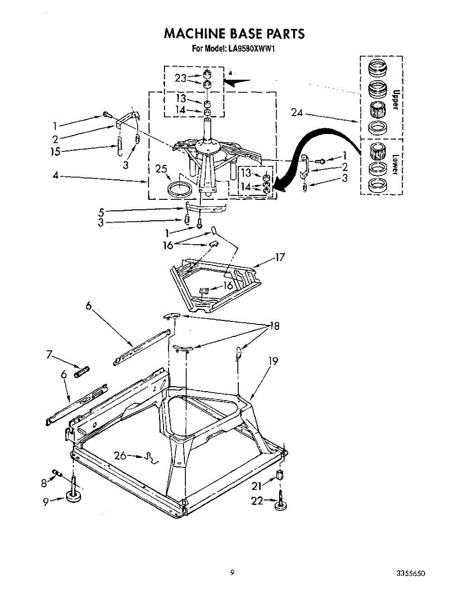 Supports the spin basket on the center post for smooth, quiet rotation. Replace if your washer is noisy, vibrating excessively, or has poor spin performance.