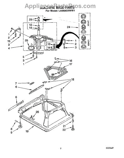 Parts for Whirlpool LA9680XWG1: 08 - Machine Base Parts