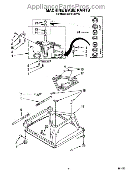Parts for Whirlpool LBR5133AG0: 08 - Machine Base Parts