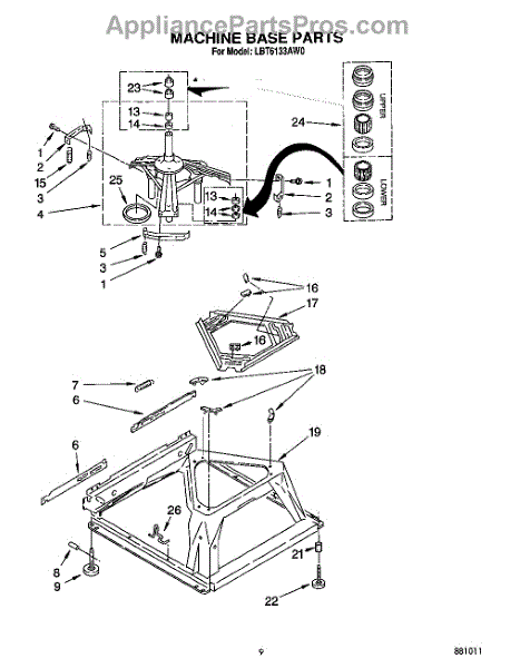 Parts for Whirlpool LBT6133AN0: 08 - Machine Base Parts