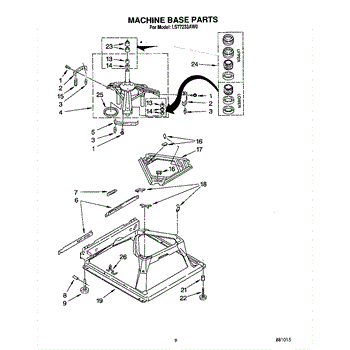 Used for direct drive washing machines. Complete assembly includes 2 level mechanism links, 1 level mechanism spring, 1 knurled pin, 2 rear feet, 1 pad plate, 1 suspension plate, 1 base pad, and 1 suspension spring retainer.