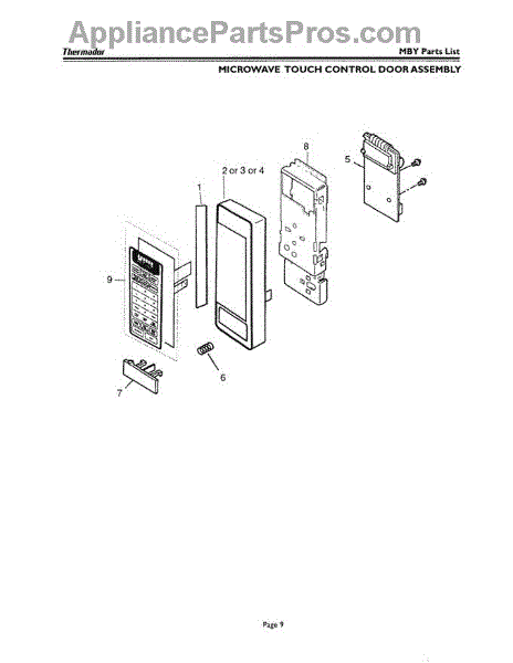 Parts for Thermador MT27S: 08 - Microwave Touch Control Door Assembly Parts