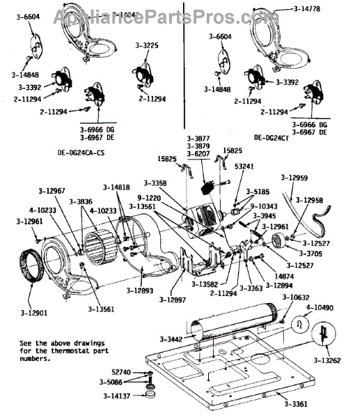 Parts for Maytag DG24CS: 08 - Motor, Blower, Base Frame & Thermostats Parts