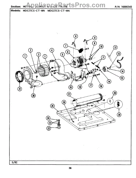 Parts for Maytag MDE27MNAFW: 08 - Motor, Blower & Base Frame Parts
