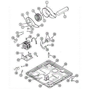 • Encloses and supports the blower wheel while channeling air from the drum to the exhaust