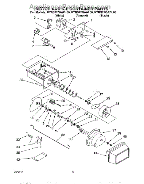 Parts for Kitchenaid KTRS22QABL00: 08 - Motor And Ice Container Parts