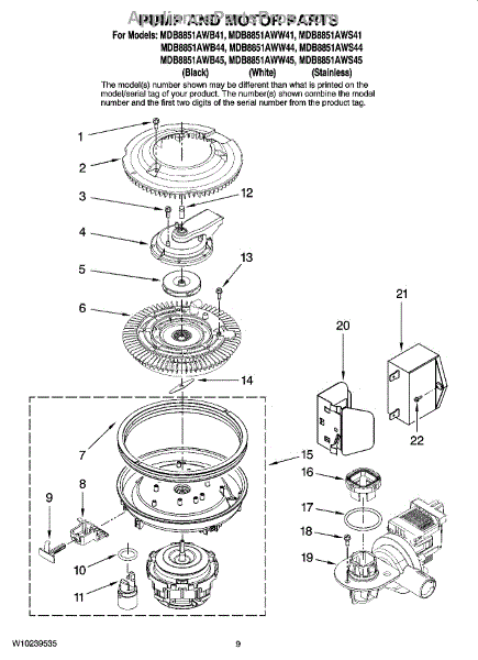 Parts for Maytag MDB8851AWB45: 08 - Pump And Motor Parts