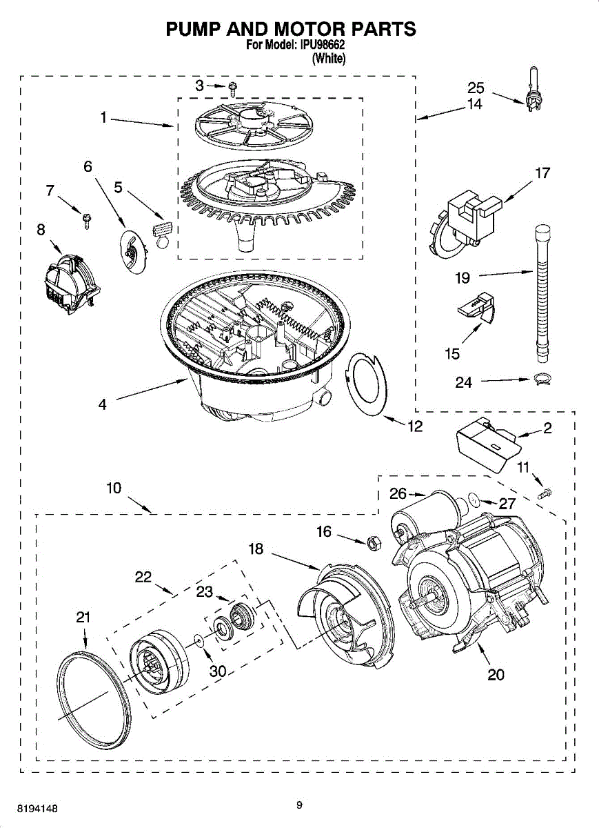 Parts for Whirlpool IPU98662: 08 - Pump And Motor Parts