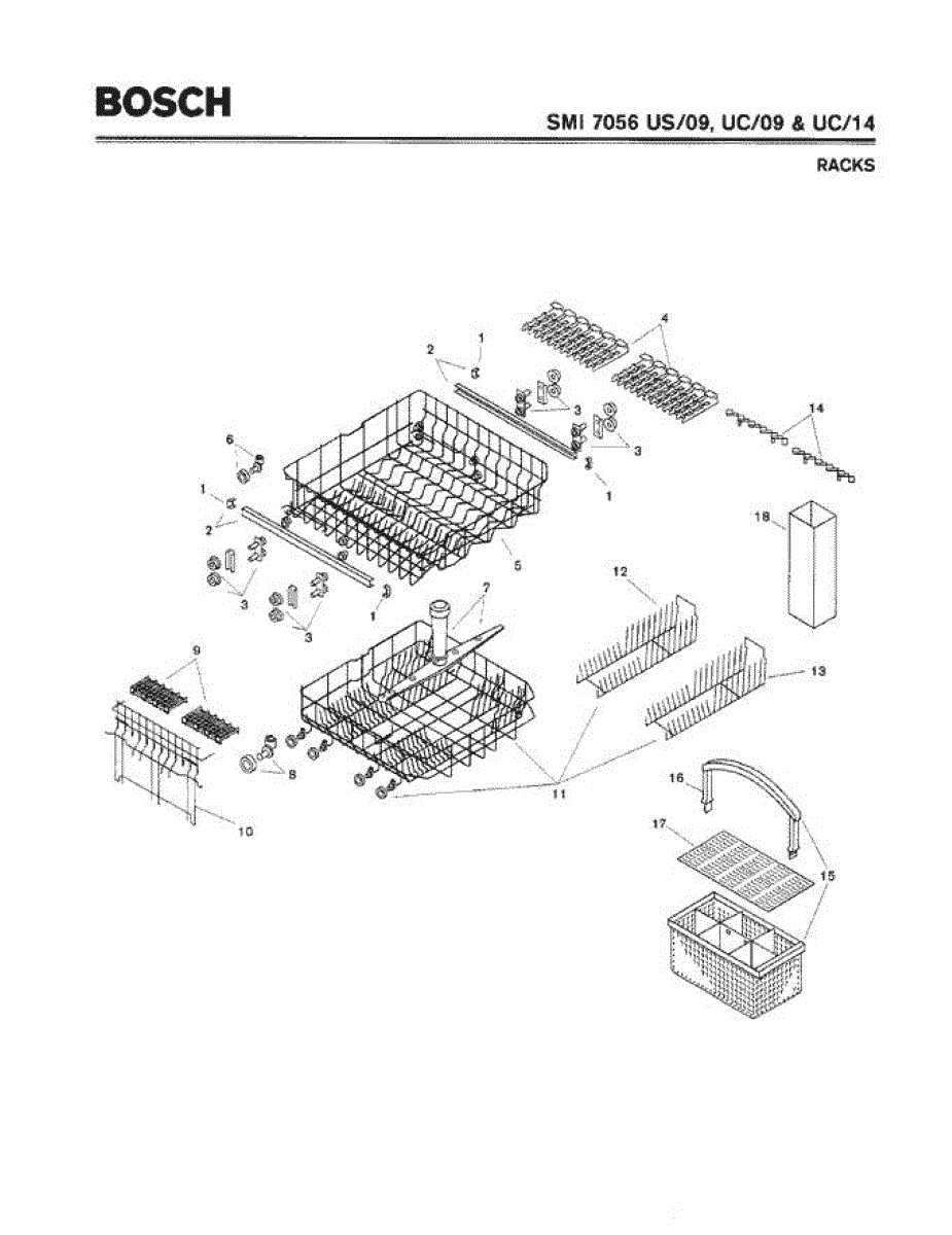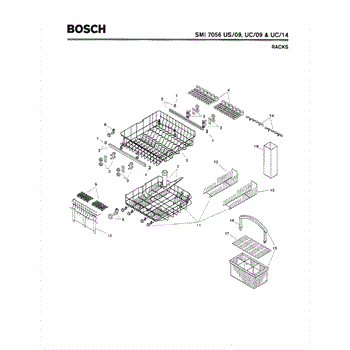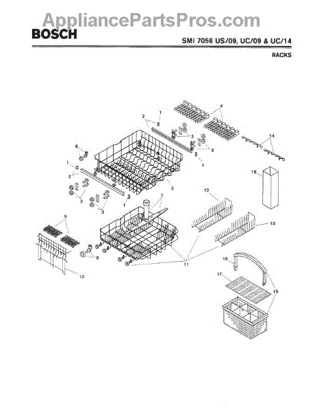 The Silverware Basket Assembly is an OEM part for Bosch dishwashers. This basket is located in the lower rack and is used to hold utensils securely during the wash cycle.