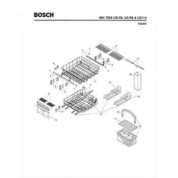 The Silverware Basket Assembly is an OEM part for Bosch dishwashers. This basket is located in the lower rack and is used to hold utensils securely during the wash cycle.
