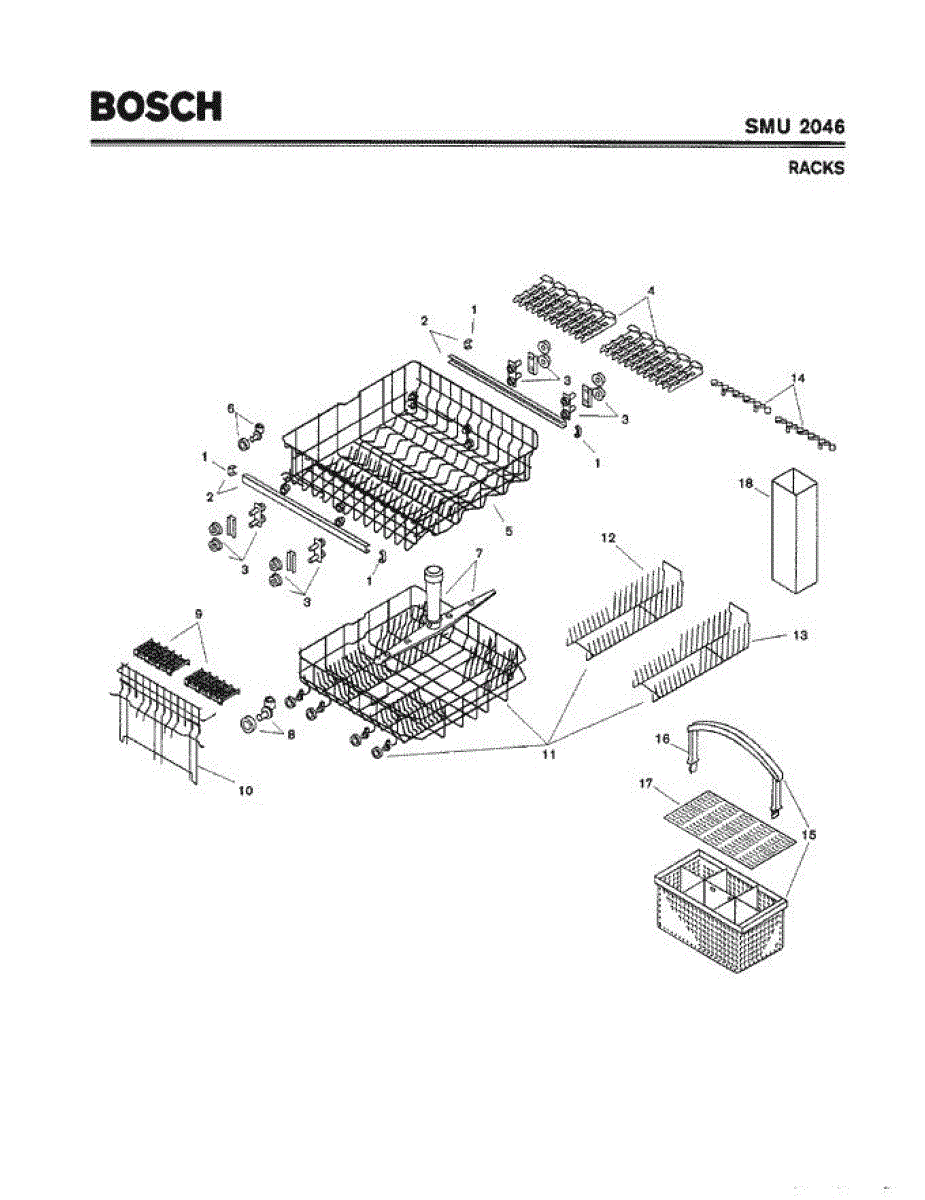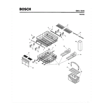 The Silverware Basket Assembly is an OEM part for Bosch dishwashers. This basket is located in the lower rack and is used to hold utensils securely during the wash cycle.