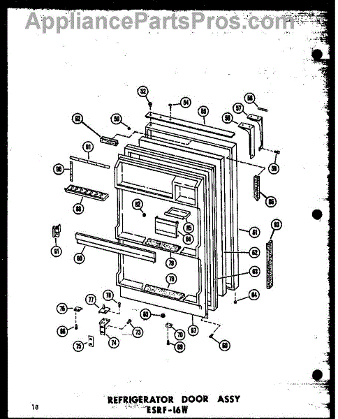 Parts for Amana ESRF-16W / P6030305W: 08 - Ref Door Assy Esrf-16W Parts