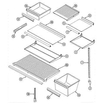 The crisper shelf center support stabilizes the pan cover above the crisper drawers to keep it level under load. Replace a cracked or missing support to restore proper shelf alignment and smooth crisper drawer operation.
