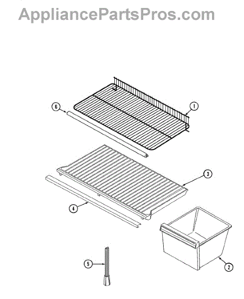 The crisper shelf center support stabilizes the pan cover above the crisper drawers to keep it level under load. Replace a cracked or missing support to restore proper shelf alignment and smooth crisper drawer operation.