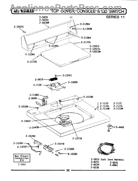 Parts for Maytag A212: 08 - Top Cover, Console & Lid Switch (Ser 11) Parts