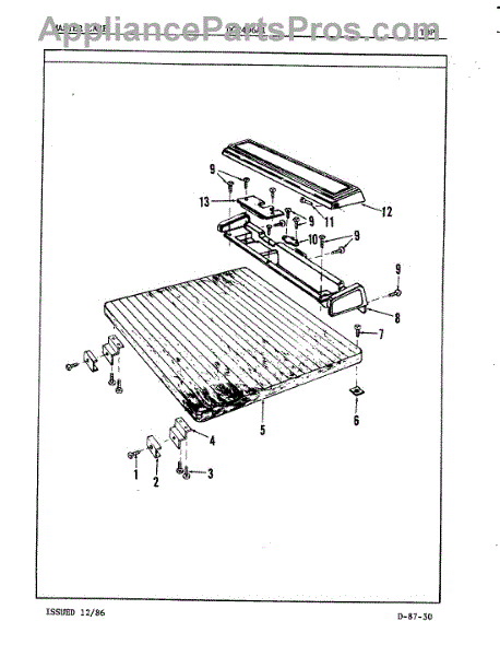 This factory screw secures appliance components to their mounting points. Replace missing, worn, or stripped hardware to restore a tight fit, proper alignment, and quieter operation across the affected assembly.