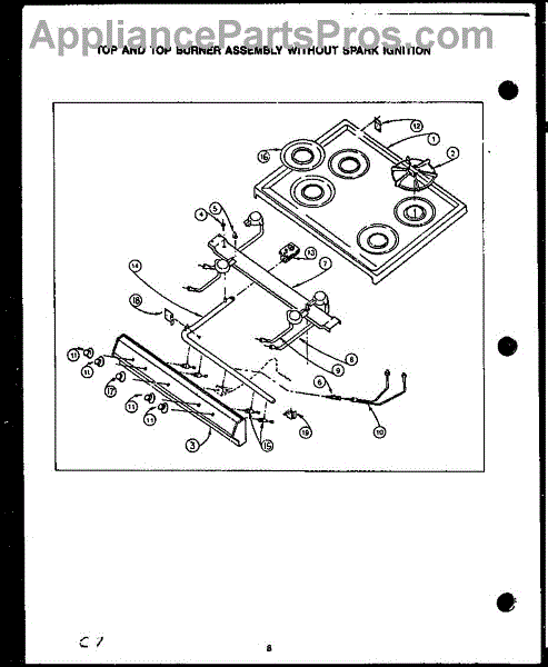Parts for Amana SBP39AA: 08 - Top & Top Burner Assy Without Spark Ign Parts