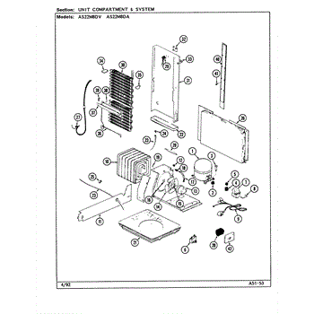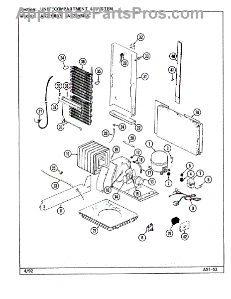 Plastic defrost pan. Evaporator pan hangs from side rails and rests on compressor.