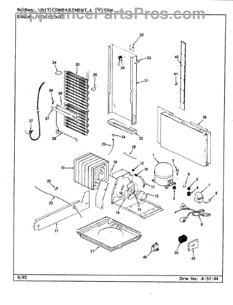 Plastic defrost pan. Evaporator pan hangs from side rails and rests on compressor.