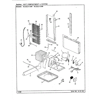 Plastic defrost pan. Evaporator pan hangs from side rails and rests on compressor.