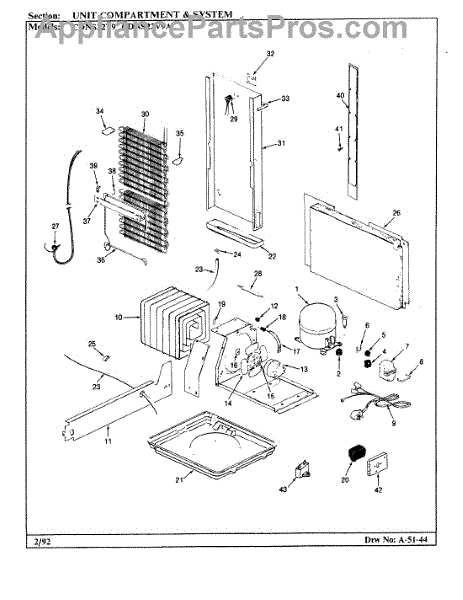 Plastic defrost pan. Evaporator pan hangs from side rails and rests on compressor.