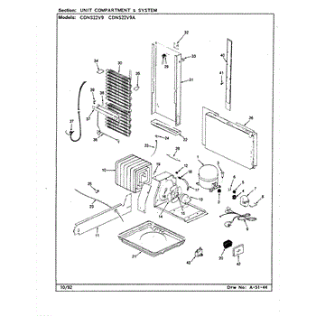 Plastic defrost pan. Evaporator pan hangs from side rails and rests on compressor.
