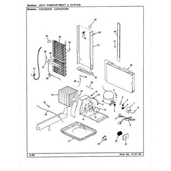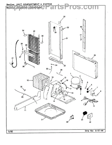Plastic defrost pan. Evaporator pan hangs from side rails and rests on compressor.