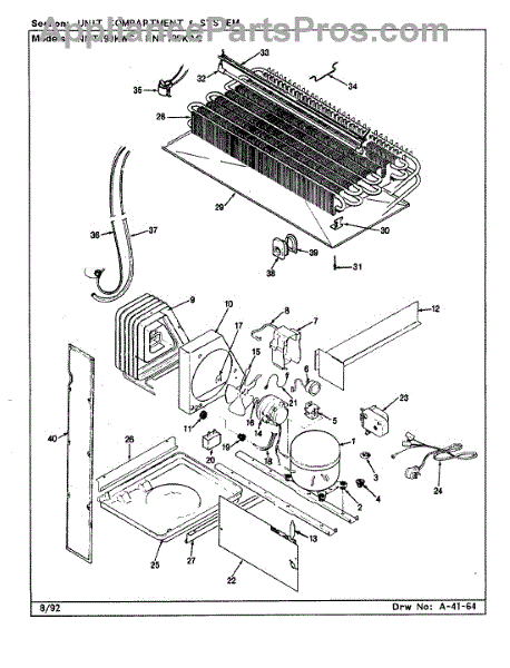 Plastic defrost pan. Evaporator pan hangs from side rails and rests on compressor.