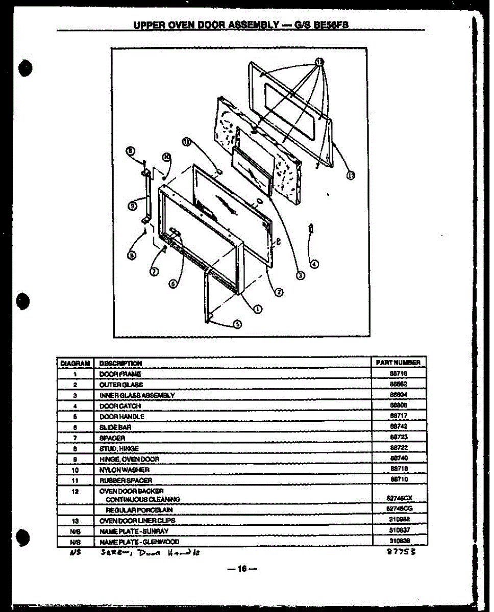 Parts for Amana GBE56FB: 08 - Upper Oven Door Assy Parts