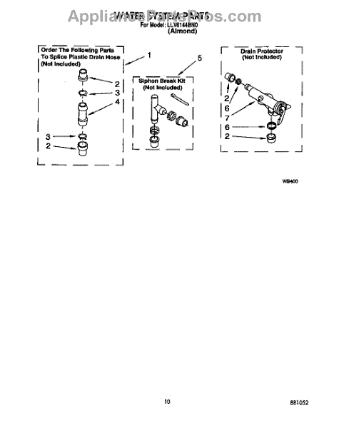 Parts for Whirlpool LLV6144BN0: 08 - Water System Parts