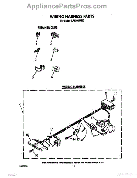 Parts for Whirlpool 4LA6300XXW0: 08 - Wiring Harness Parts