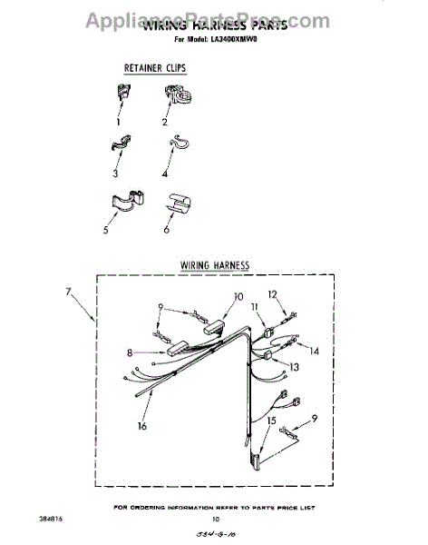Parts for Whirlpool LA3400XMW0: 08 - Wiring Harness Parts