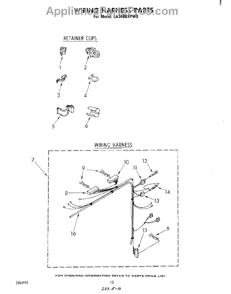 Parts for Whirlpool LA3400XPW0: 08 - Wiring Harness Parts